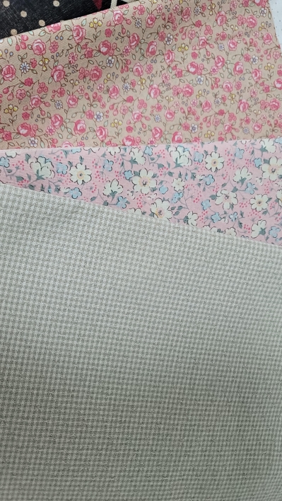 앤틱 플라워 & 체크 패치워크 하프린넨 커트지 140cm x 83cm