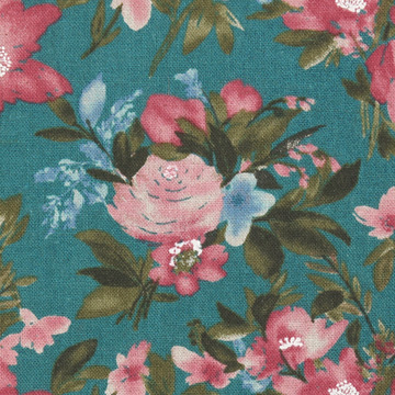 [국산린넨] 대폭 핑크 플로라 린넨 프린트원단 - 그린