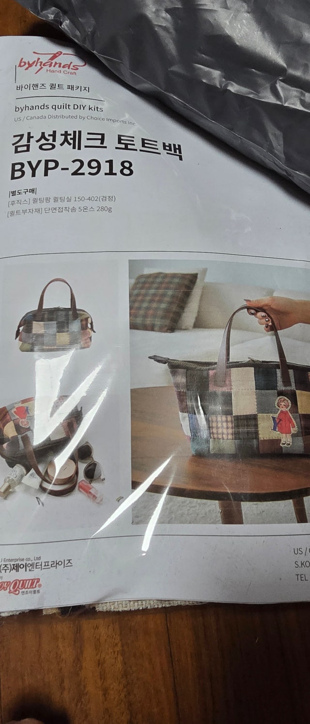 [바이핸즈] 퀼트패키지 가방 - 감성체크 토트백