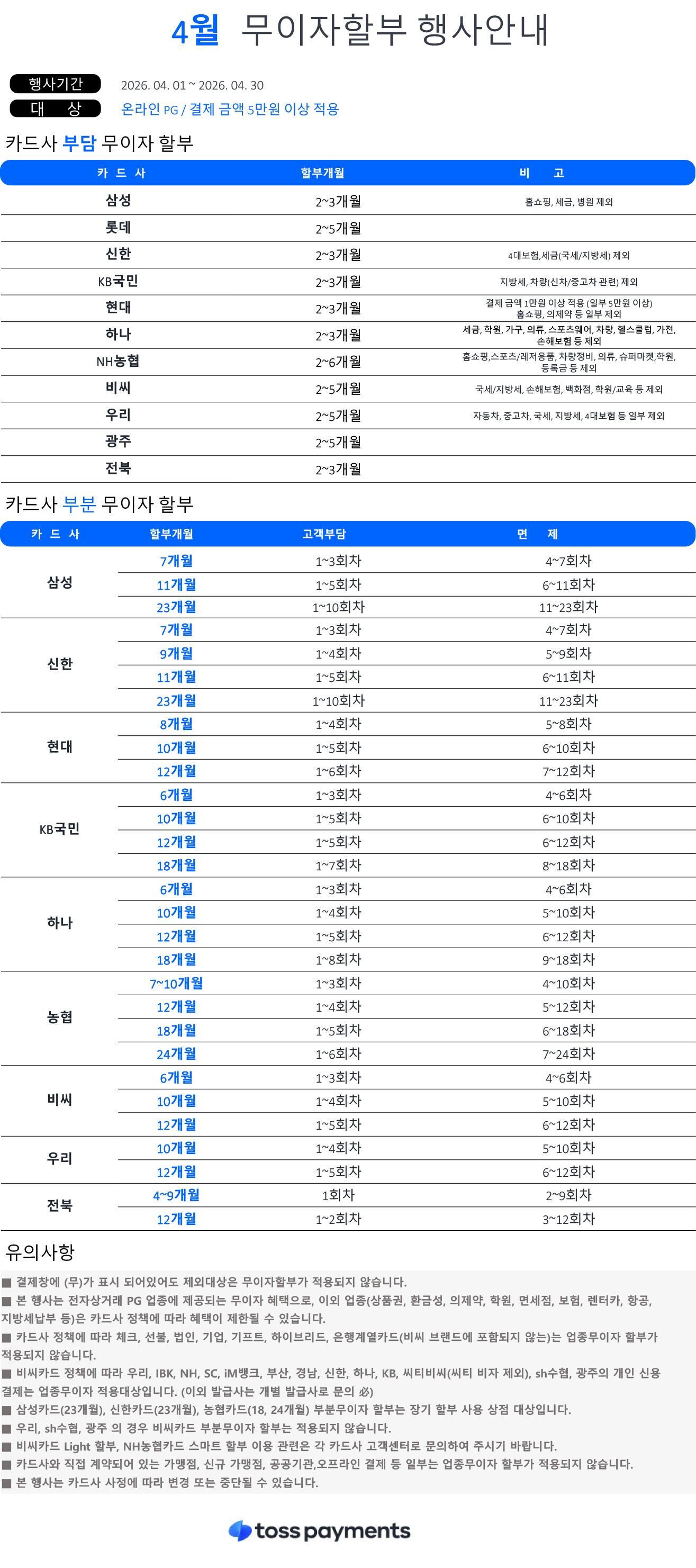 4월 카드 무이자 할부 안내
