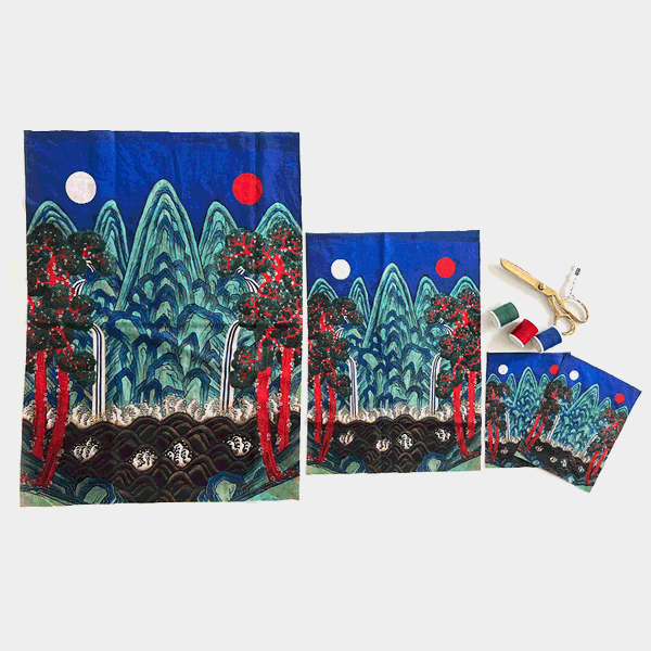 비단면 대폭 전통원단 일월오봉도 커트지 90cm x 72cm