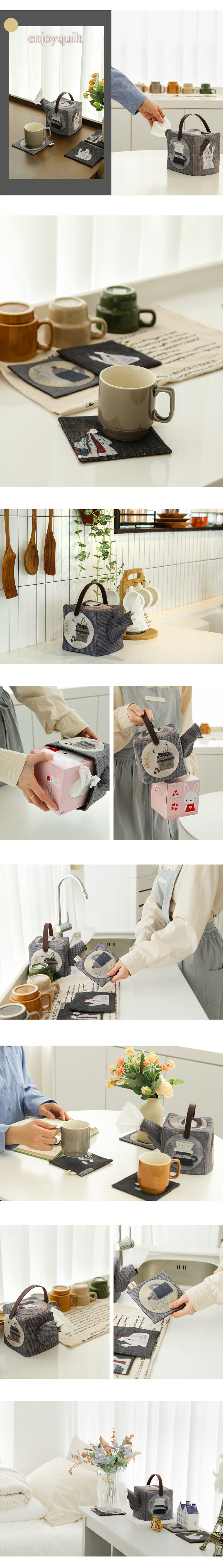 바이핸즈 오리지널 퀼트 패키지 퀼트패키지 소품 커피소녀 티슈케이스 & 티매트.직접 만들어 더 소중한 핸드메이드 소품 만들기 DIY 키트입니다.엔조이퀼트 자체 제작 도안과 고급 수입 원단 사용.난이도 중급, 기초 바느질 가능하신 분 추천.구성품: 실물 도안, 설명서, 원단, 부자재. 솜과 실은 별도 구매.태교 바느질, 직장인 취미, 엄마 선물 추천 아이템.