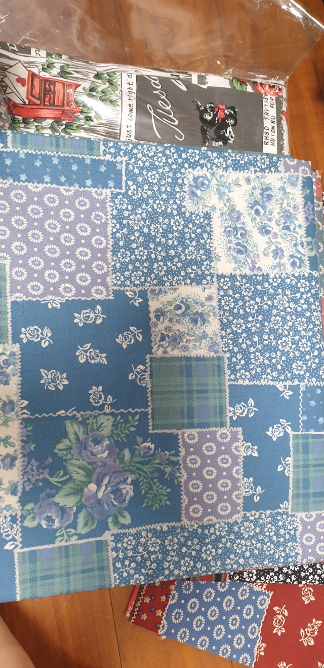 [코튼프린트] 대폭 튤립래빗 프린트원단 - 블루