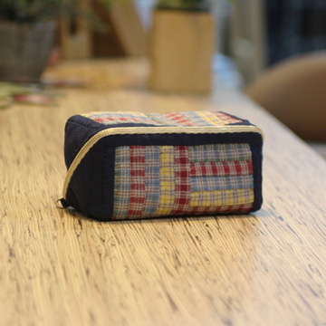 [바이핸즈] 뉴트로 선염체크원단 - 다크사파이어