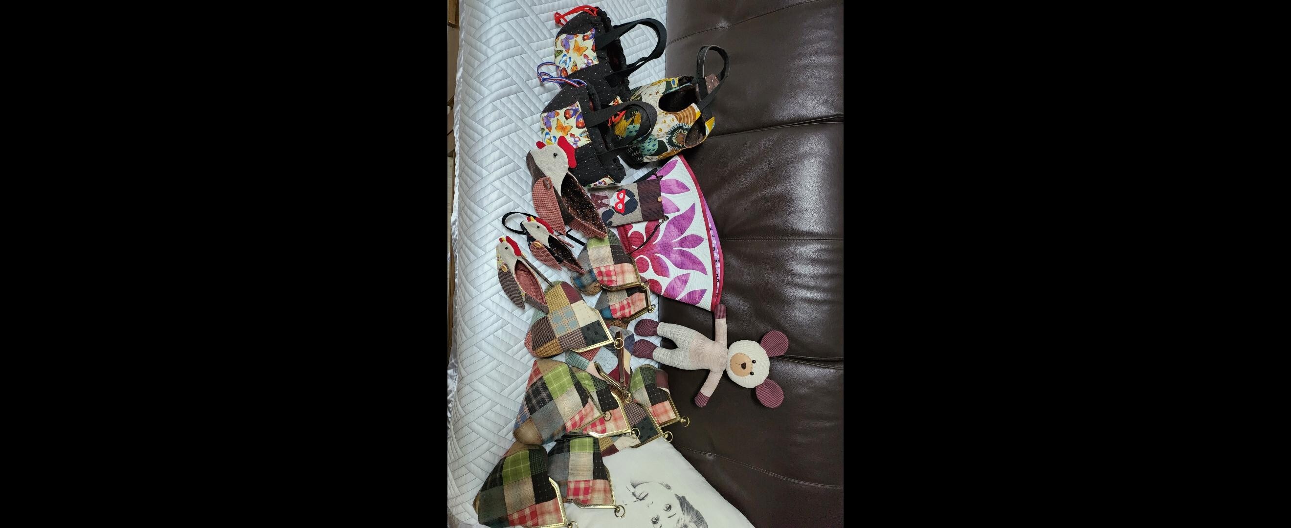 여러작품을 많들었는데 올리는걸 못해서 있다가 오늘 찿았어요 미국손주한테 슬링백 만들어주고 손녀딸은 작은가방을 만들어 주었어요 삼각손잡이가방은 모임에서 같이 만들려고 재료 구입했는데 못하게되어서 정리하느라고9개를 만들었는데 누구를 나눠줘야할지 고민이에요 곰인형은 태어날 손녀 선물이에요 손바느질과 미싱으로 만들었어요