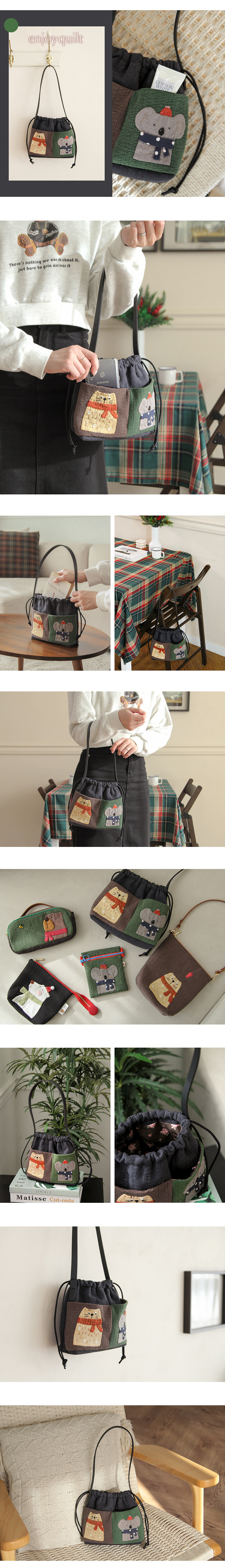 퀼트를 처음 시작하는 분부터 캐릭터 퀼트를 좋아하는 취미자까지 차분히 따라 만들 수 있는 난이도로, 바느질 취미 가방 키트, 태교 바느질용 가방, 엄마 선물이나 친구 선물용 핸드메이드 가방으로 추천드립니다. 엔조이퀼트와 바이핸즈가 함께 선보이는 동물 캐릭터 퀼트 패키지로, 데일리 룩에 포인트를 주기 좋은 사랑스러운 복조리 숄더백입니다.