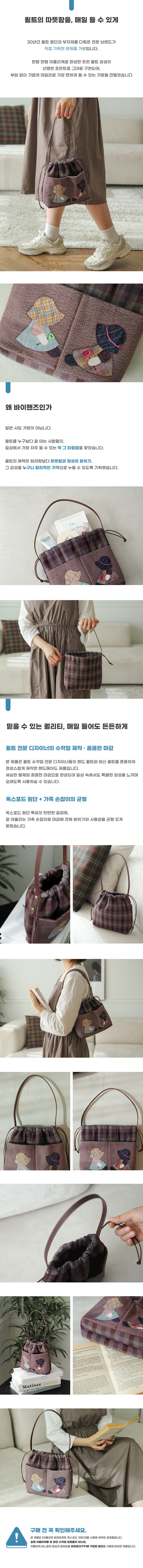 실제 아플리케를 한 완전 수작업 완제품이 아니라, 아플리케 바느질의 감성과 입체감을 프린트(DTP)로 구현한 원단을 사용해 완성한 제품입니다.