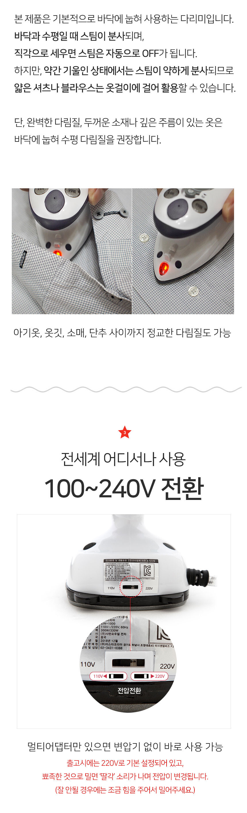 다리미 앞쪽의 빨간불이 꺼지면 예열이 완료된 상태이며, 이때 스팀 버튼을 누르시면 잠시 후 스팀이 분사됩니다.