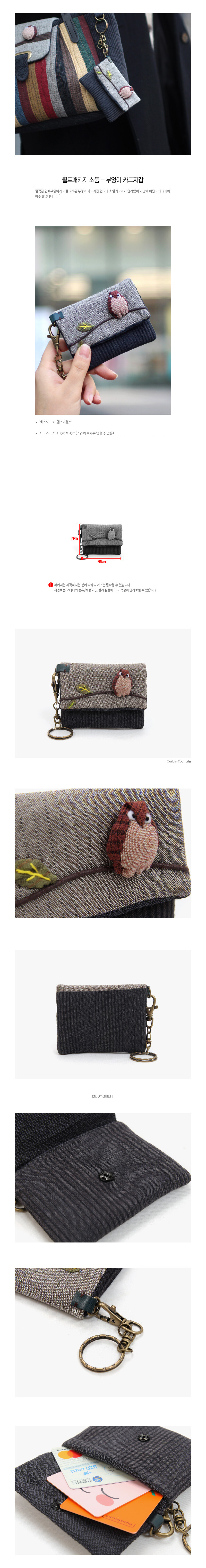 바이핸즈 오리지널 퀼트 패키지 퀼트패키지 소품 부엉이 카드지갑.직접 만들어 더 소중한 핸드메이드 기타 만들기 DIY 키트입니다.엔조이퀼트 자체 제작 도안과 고급 수입 원단 사용.난이도 중급, 기초 바느질 가능하신 분 추천.구성품: 실물 도안, 설명서, 원단, 부자재. 솜과 실은 별도 구매.태교 바느질, 직장인 취미, 엄마 선물 추천 아이템.