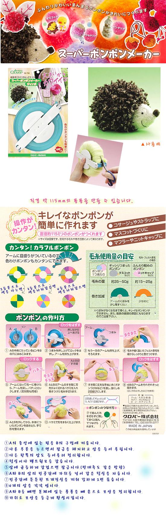 생산지: 일본(크로바) 크 기 : 직경 약 115mm의 빅 사이즈 특 징 : 털방울 만들기(jumbo)